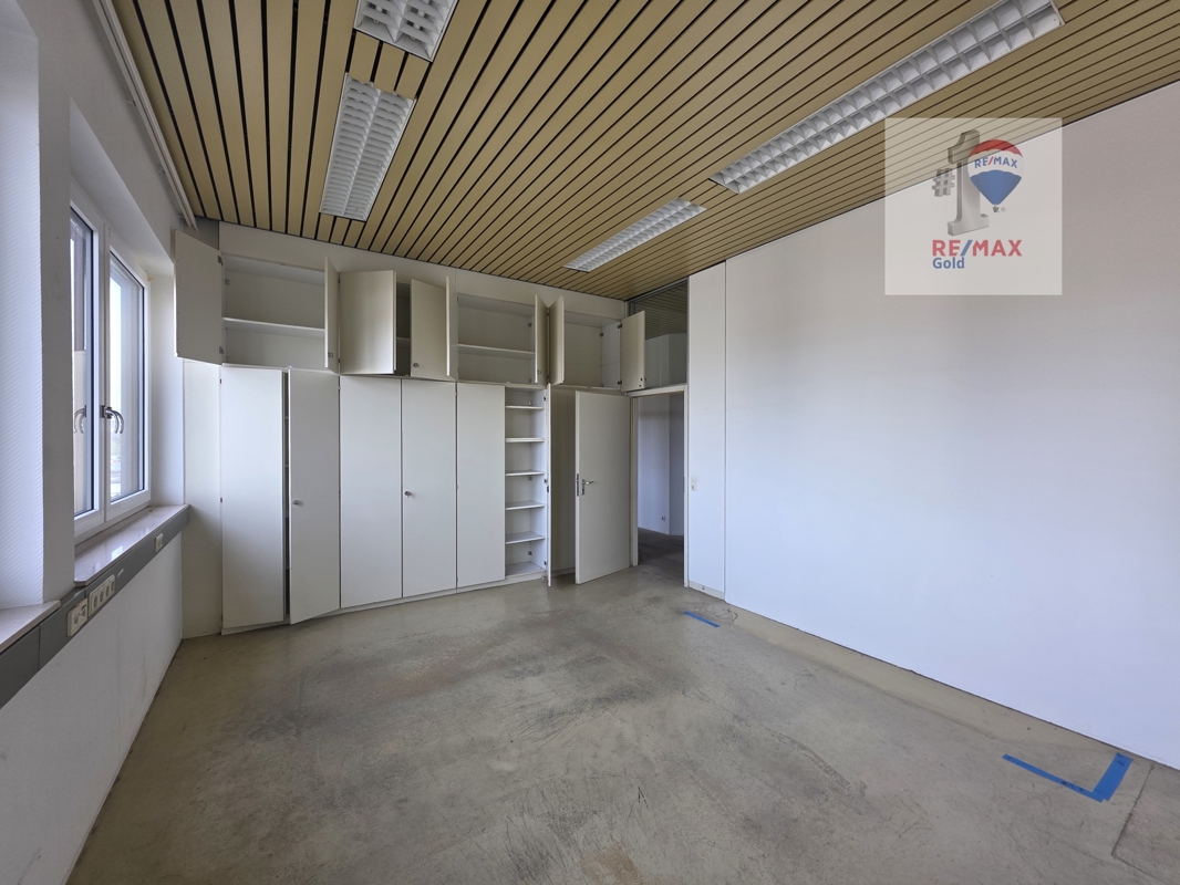 - Büroflächen: ca. 126,4 m², ausgestattet mit deckhohen Aktenschränken als Raumtrenner