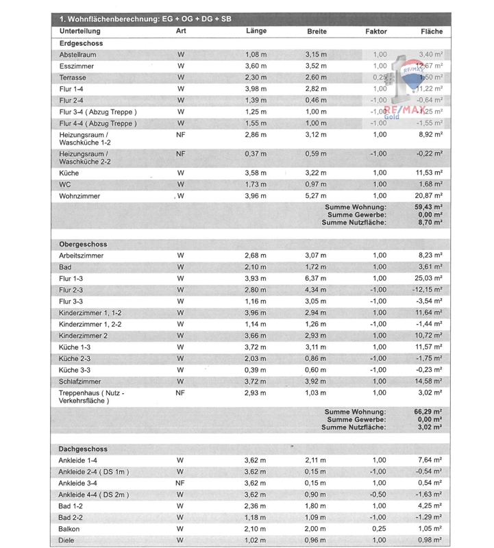 Obergeschoss ( Wfl: ca. 66,29m² und Nutzfläche: ca. 3,02m² )