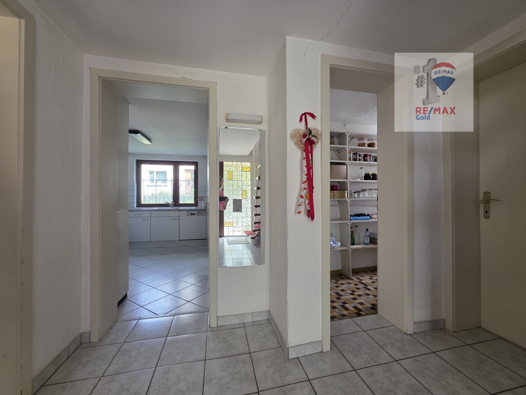 Ein zentraler Flur führt zu den fünf flexibel nutzbaren Zimmern, die sich ideal als Kinder-, Arbeits-, Gästezimmer oder Ankleide eignen. Diese Vielzahl an Räumen bietet individuelle Gestaltungsmöglichkeiten – perfekt für Familien oder Menschen mit Platzbedarf.