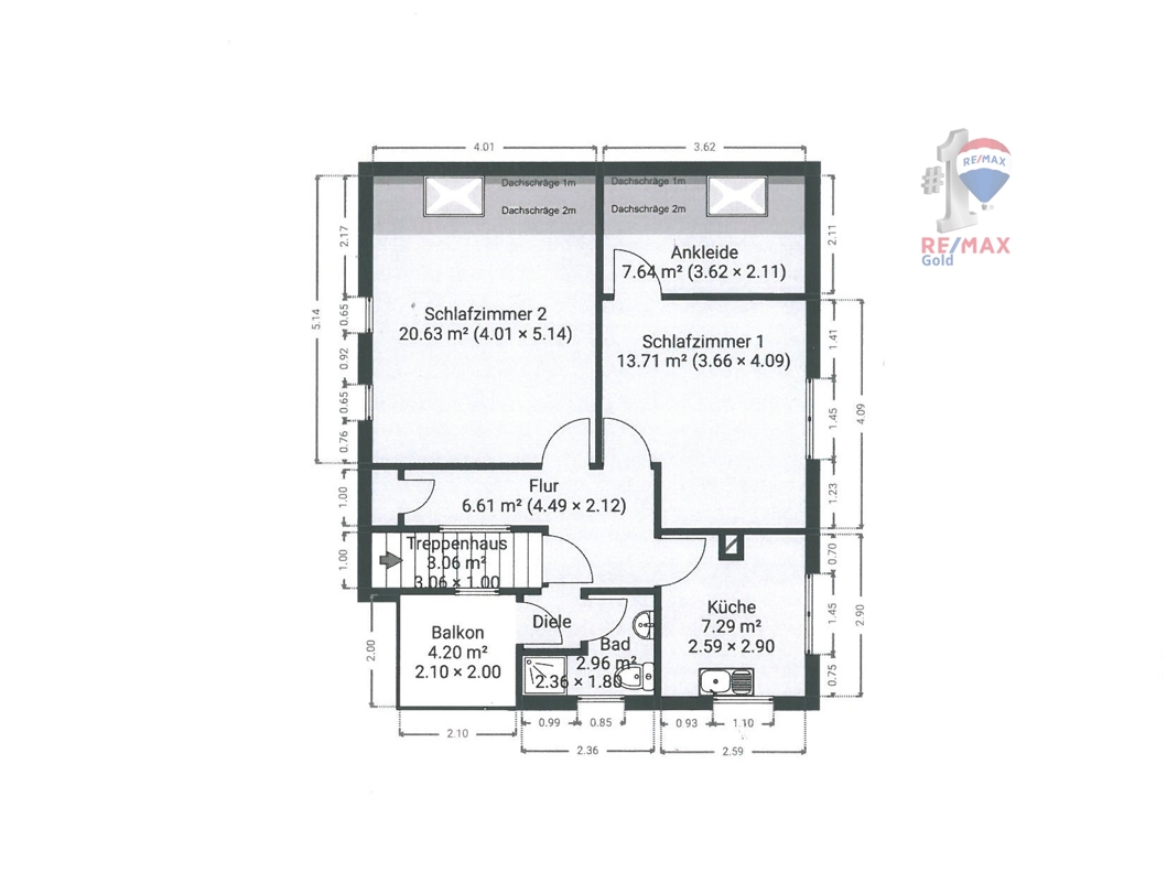 Dachgeschoss (Wfl: ca. 56,28m² und Nutzfläche: ca. 4,66m² )