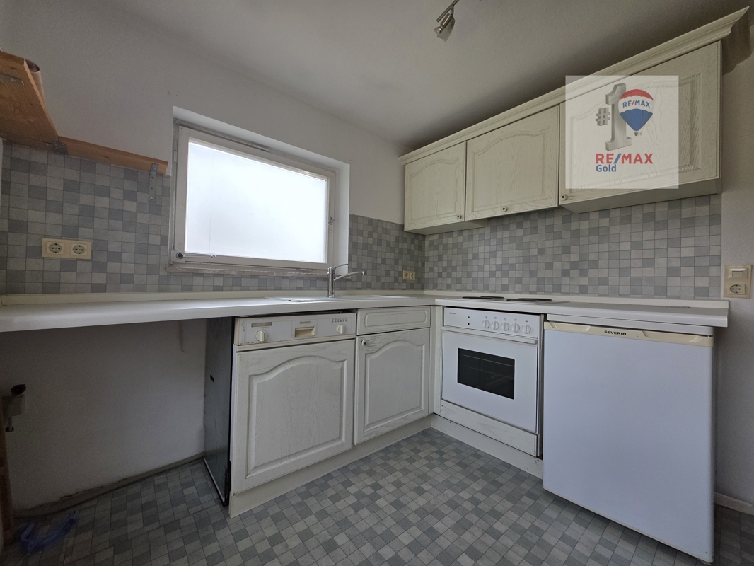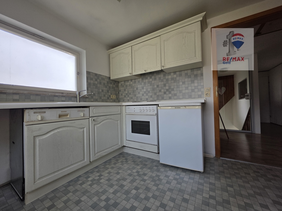 Die Küche ist mit einer Einbauküche ausgestattet und verfügt über einen praktischen Waschmaschinenanschluss.